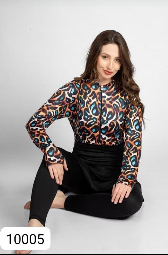 بوركيني سومينج ليكرا  مكون من 2 قطع ( دريس مطبوع  -بنطلون - تربون ) 2xl.   M